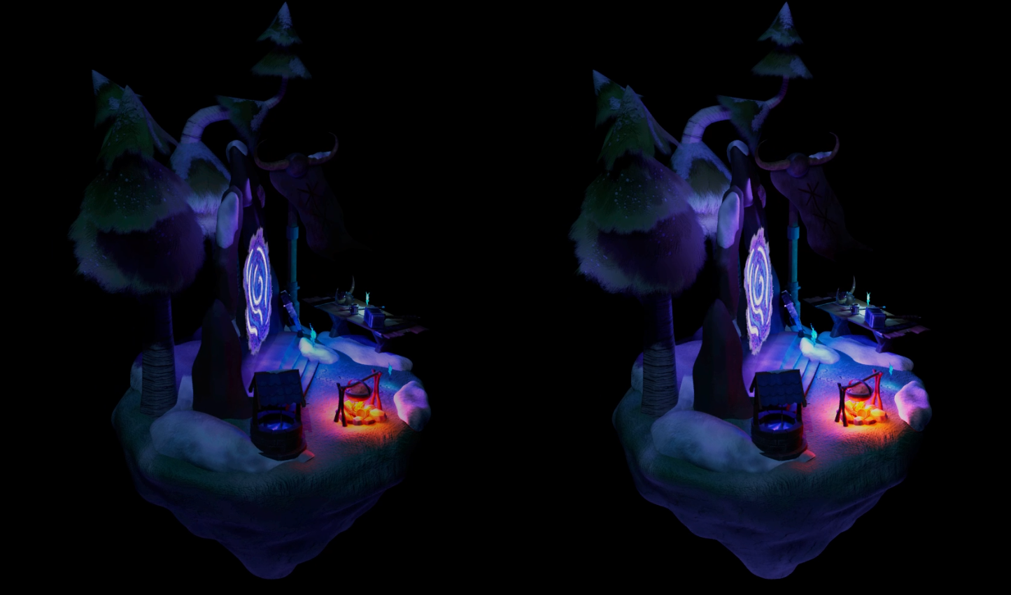 This is an art piece of a 3D modelled environment, with the intent of it being a resting spot and a place to regenerate before going on your next quest, it was made for a character with the origin of Viking descent and holding earth magic and abilities, searching for answers to how their powers came about and why. ;)